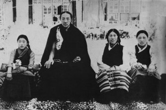 Khyentse Rinpoche with his family at Lhasa, before leaving for Bhutan. Following his master's death, Khyentse Rinpoche went into secluded retreat in a cave in Denkok with his brother Shedrub and two attendants. He would wake up at three o’clock in the morning and meditate on the life of his perfect Teacher. He wanted to spend his life in solitude and wilderness, but his teachers advised him to uphold, preserve and expound the doctrine to the faithful. He honored the advice of his teachers, a commitment that lasted until the end of his life.