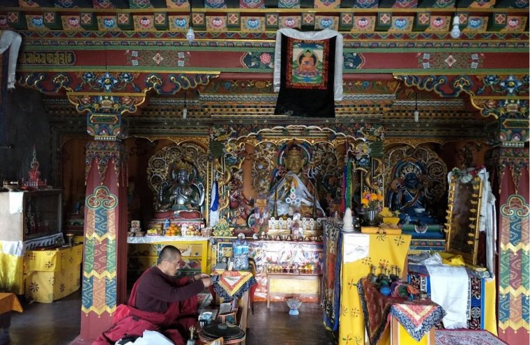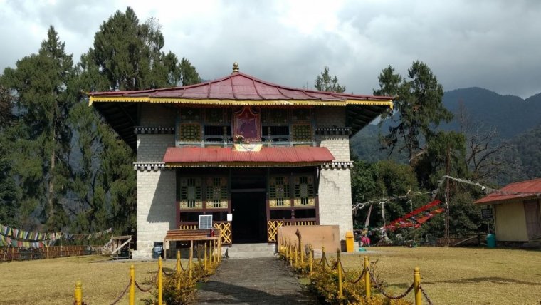 The monastery is located on the top of a hill, 1977m altitude, about three kilometers from Yuksom.