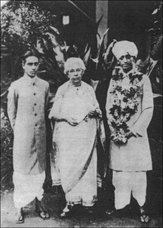 Annie Besant arriving in Bombay with Krishnamurti and Nityananda, 1924