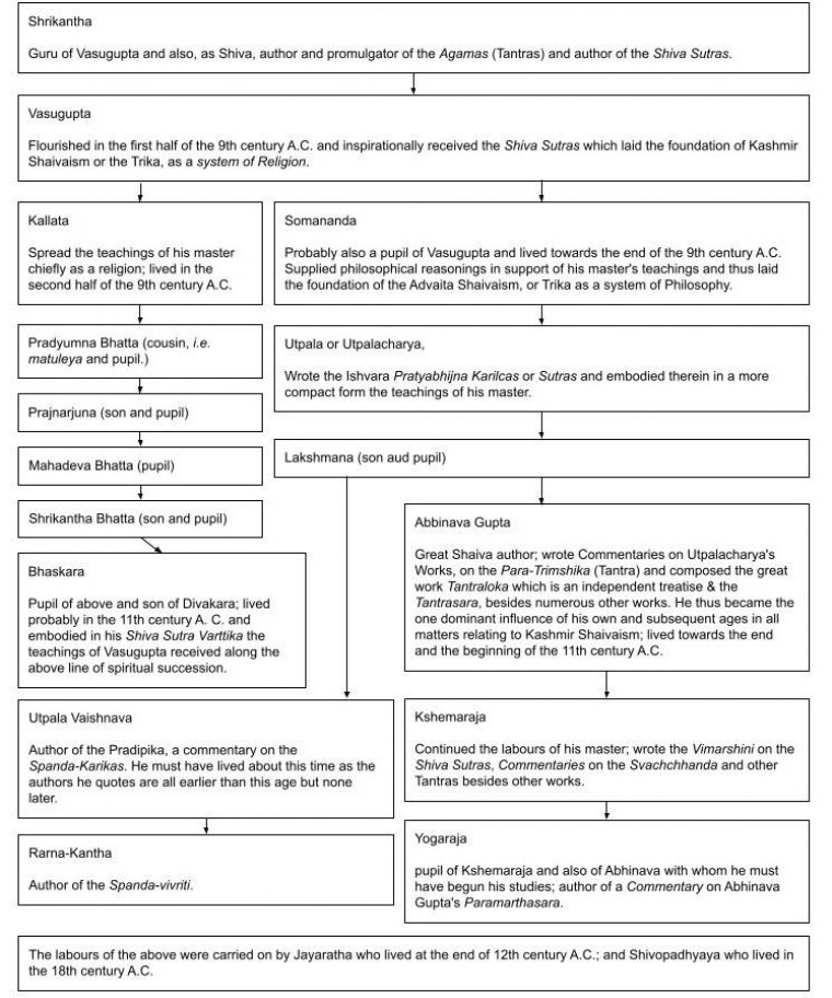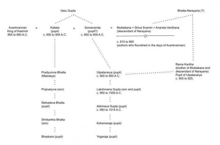 While we know nothing more than this about Vasugupta, Somananda, the founder of the Pratyabhijna Shastra tells us a good deal about his lineage. We find the following account given by Somananda himself:—