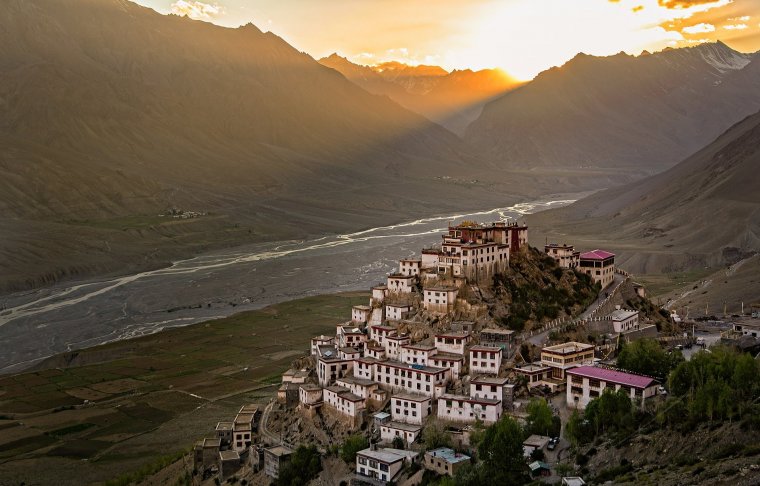 The monastery located on top of a hill at an altitude of 4,166 metres, in the Spiti Valley of Himachal Pradesh, India.