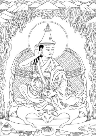 Rechungpa. Line Drawing by Robert Beer.Dorje Drakpa (Vajra Fame) was born in 1084 in Rala, near Gungthang. When he was about eight years old his father died, and he remained in care of his mother and paternal uncle.