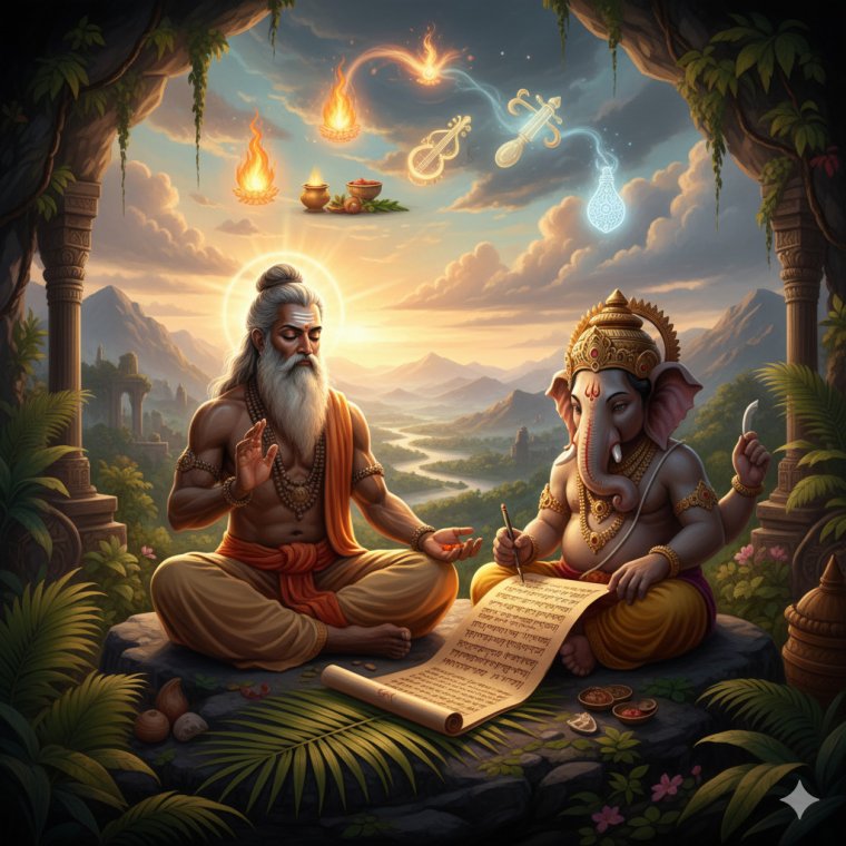 Vyasa dictating the Mahabharata to Ganesha. Photo: Google AI Studio