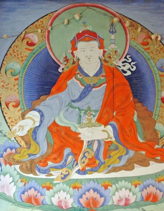 Wall painting at Paro Bridge, Bhutan, of Padmasambhava. Photo: Baldiri, WikipediaFrom the 11th century, many Tibetan saints and eminent figures came to Taktsang to meditate, including Milarepa (1040–1123)4, Pha Dampa Sangye (died 1117), the Tibetan yogini Machig Labdrön (1055–1145) and Thangton Gyelpo (1385–1464).