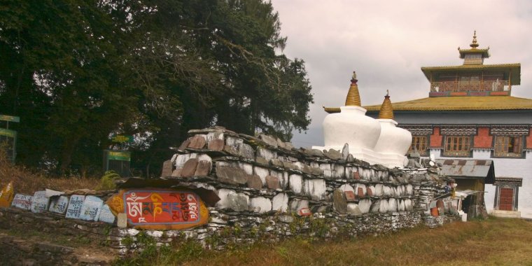 This monastery located at an altitude of 1465 m is built on top of a hill above the confluence of the Rathong Chu and Rangeet rivers, with the Mt. Kanchendzonga providing the scenic back drop. It is about 16 km from Yuksam, 40 km from Gezing via Legship.