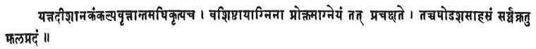 8. Agni Puráńa. "That Puráńa which describes the occurrences of the Íśána Kalpa, and was related by Agni to Vaśisht́ha, is called the Ágneya: it consists of sixteen thousand stanzas58." The Agni or Agneya Puráńa derives its name from its having being communicated originally by Agni, the deity of fire, to the Muni Vaśisht́ha, for the purpose of instructing him in the twofold knowledge of Brahma59. By him it was taught to Vyása, who imparted it to Súta; and the latter is represented as repeating it to the Rising at Naimishárańya. Its contents are variously specified as sixteen thousand, fifteen thousand, or fourteen thousand stanzas. The two copies which were employed by me contain about fifteen thousand ślokas. There are two in the Company's library, which do not extend beyond twelve thousand verses; but they are in many other respects different from mine: one of them was written at Agra, in the reign of Akbar, in A. D. 1589.